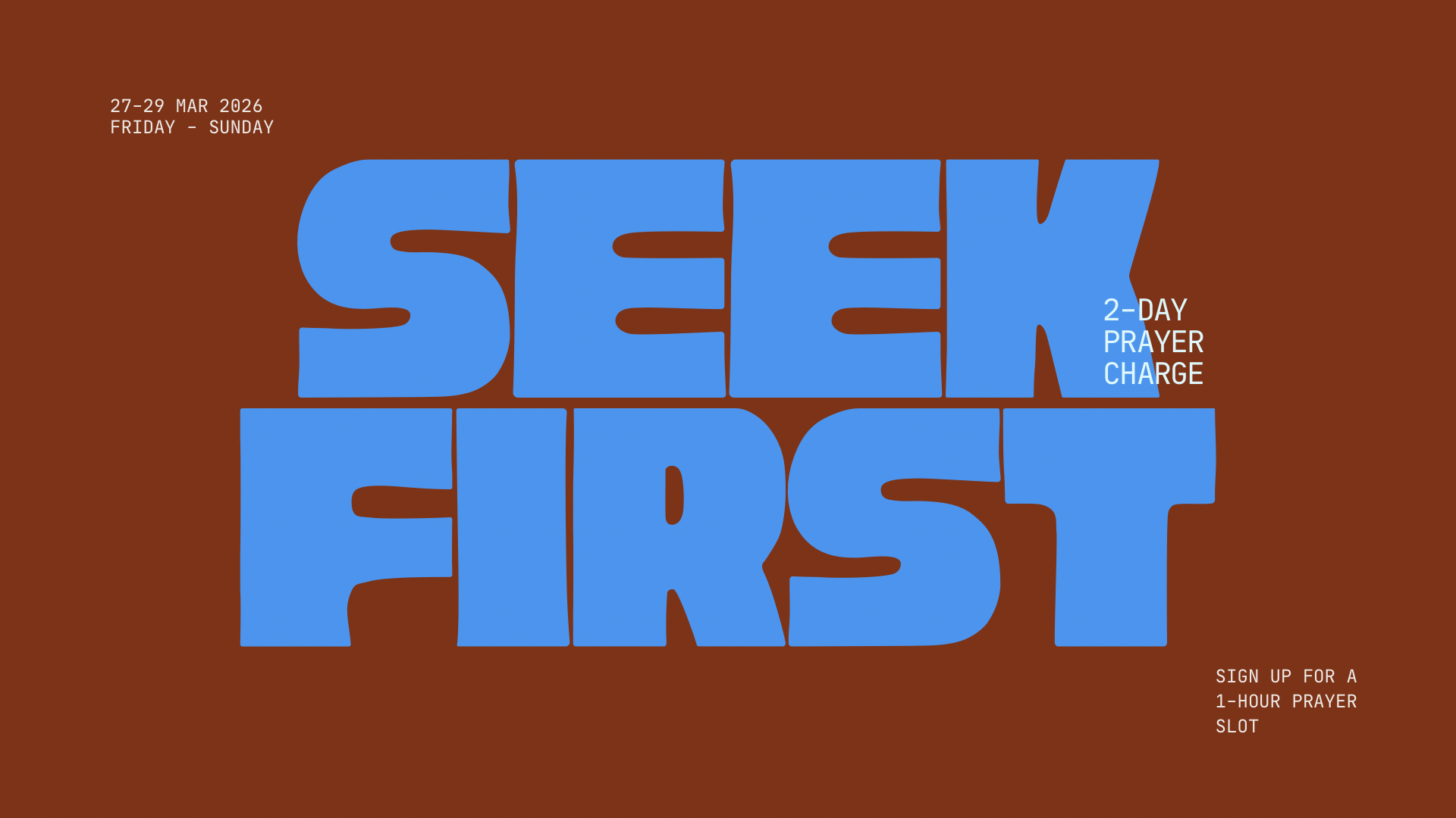 Sign up for a 1-hour slot to pray and intercede. Take up a slot as a family or LifeGroup too!