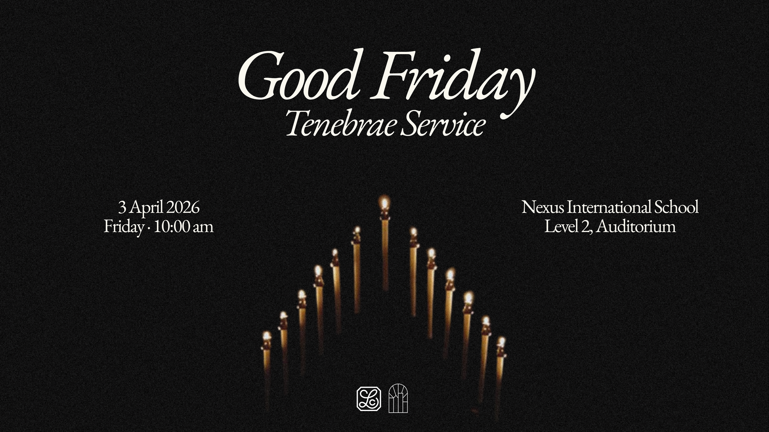 Nexus Auditorium (Level 2)A Tenebrae service is a time of Scripture reading and reflection that moves from light to darkness by candlelight. Through this movement, we are invited to experience the sorrow of the cross and the hope that awaits in the resurrection.