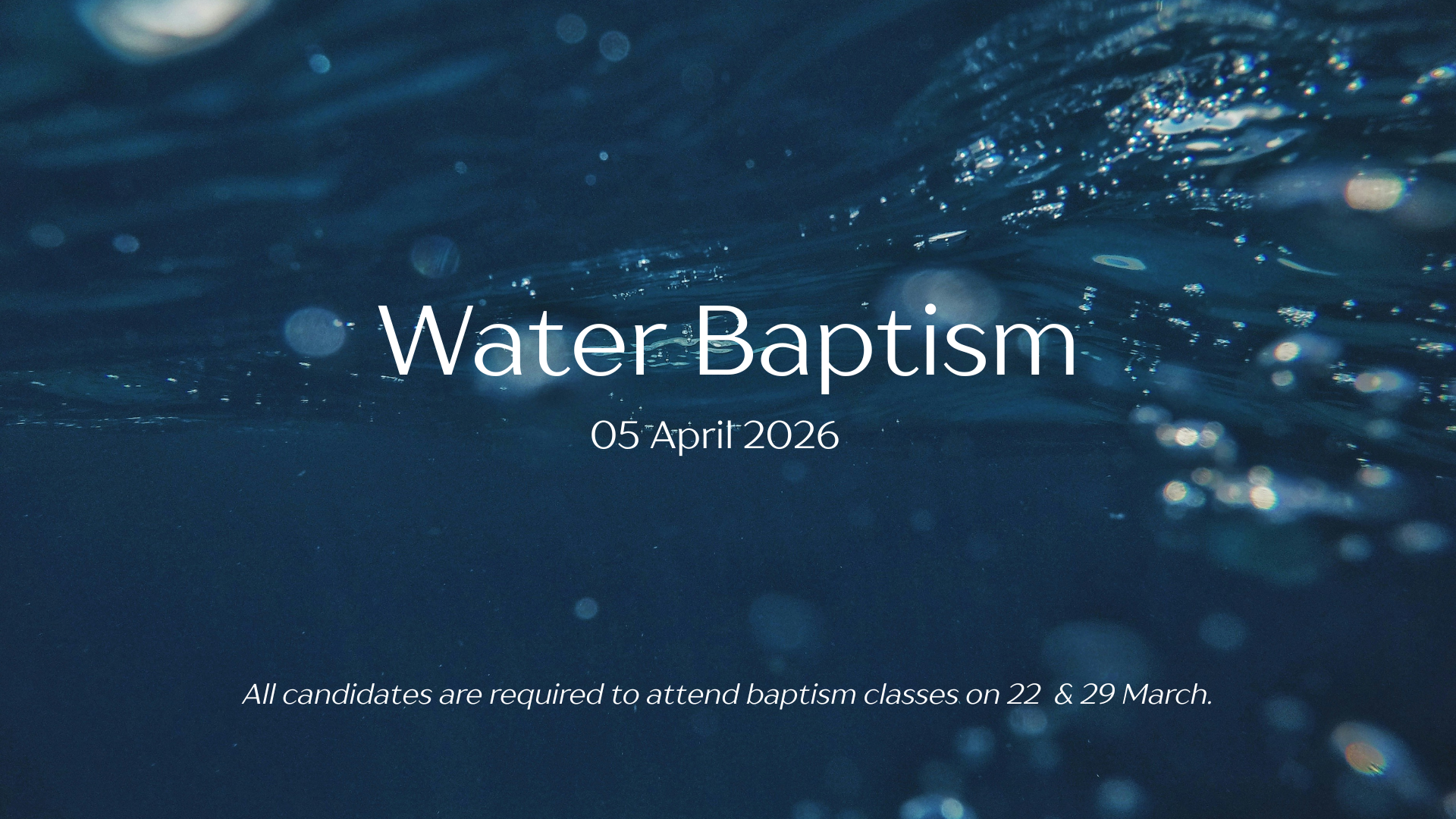 Candidates must attend Baptism Classes on 22 & 29 March.
